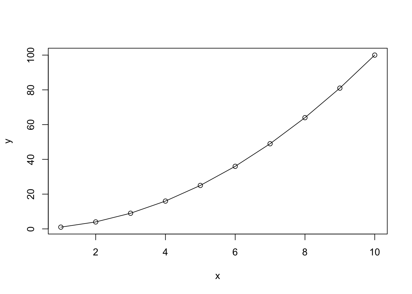 x<-1:10; y=x*x